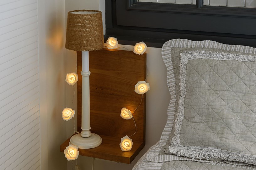 ¿Y dónde mejor que las luces decorativas que en nuestra habitación? Te harán compañía mientras lees un libro antes de dormir y te ayudarán a relajarte. Decora la cómoda o la mesita de noche con flores luminosas y que tengas dulces sueños.