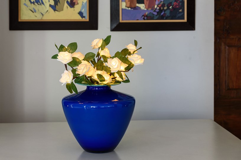 Las luces combinadas con flores crean un efecto único. Coloca un bonito jarrón en el salón con rosas blancas iluminadas para aportarle brío y luminosidad. Además apagadas, serán un bonito ramo de flores contrahechas.