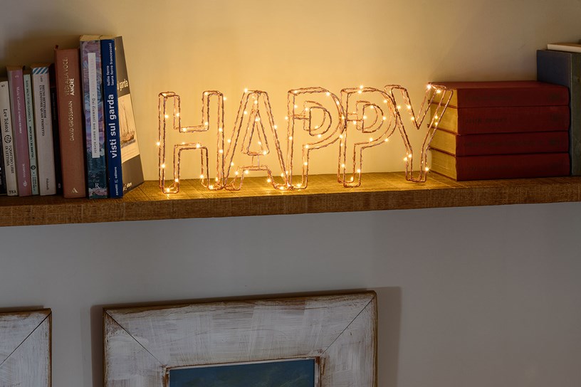 Los mensajes luminosos son más que una tendencia en la organización de eventos. Tan brillantes y positivos que, ¿por qué no incorporarlos a la decoración de casa? Te quedará ideal si colocas una de nuestras palabras con luces entre los libros de la estantería.