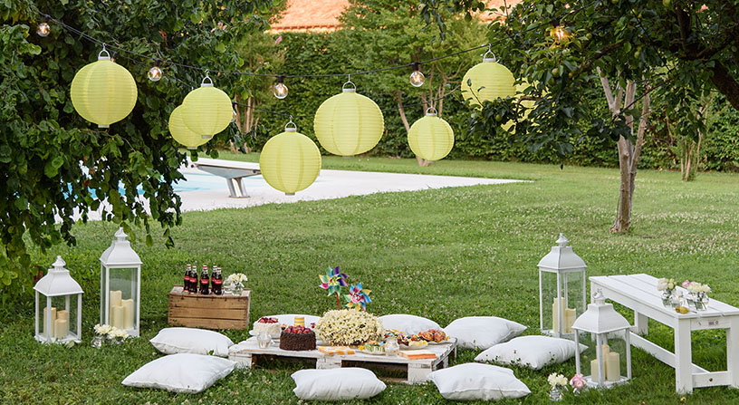 Si te decides por organizar una fiesta de otoño al aire libre por la tarde sólo acuérdate de la hora de la caída del sol ya que deberás de añadir algunas luces al jardín sino quieres que la fiesta decaiga un par de horas después de haber empezado.