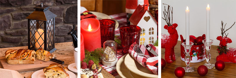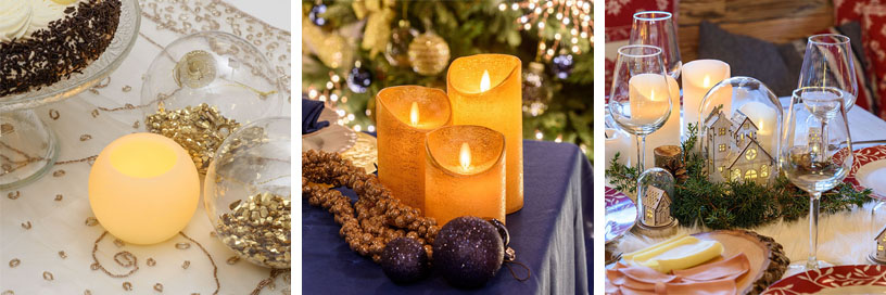 Para una mesa navideña elegante puedes seguir la tendencia de este año utilizando velas Led de colores metálicos en oro, plata y cobre pero con un acabado rústico que las hacen ideales. Pero también te quedarán genial las velas Led de color marfil o blancas.