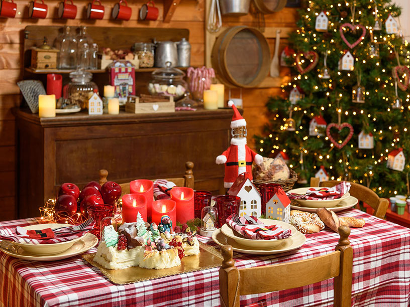 Para una decoración navideña alegre puedes usar las velas rojas, los farolillos con velas y las velas de candelabro con las que podrás despreocuparte y disfrutar de la cena.