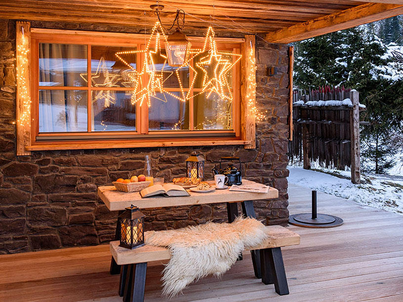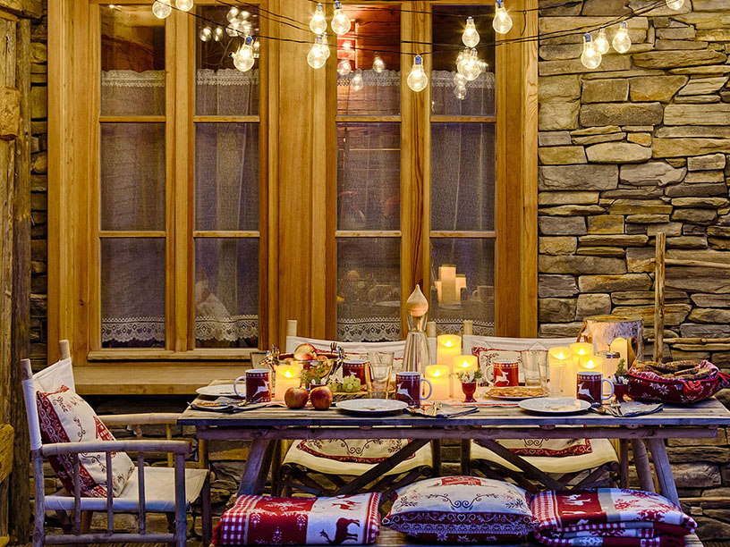 Aunque en invierno hace mucho frío para celebrar la comida de Navidad en el jardín sí que podemos preparar una merienda o simplemente un chocolate caliente. Pon algunas mantas y haz que tus invitados se sientan a gusto con un ambiente decorado con las luces navideñas: las estrellas luminosas y las guirnaldas de bombillas serán tus aliados.