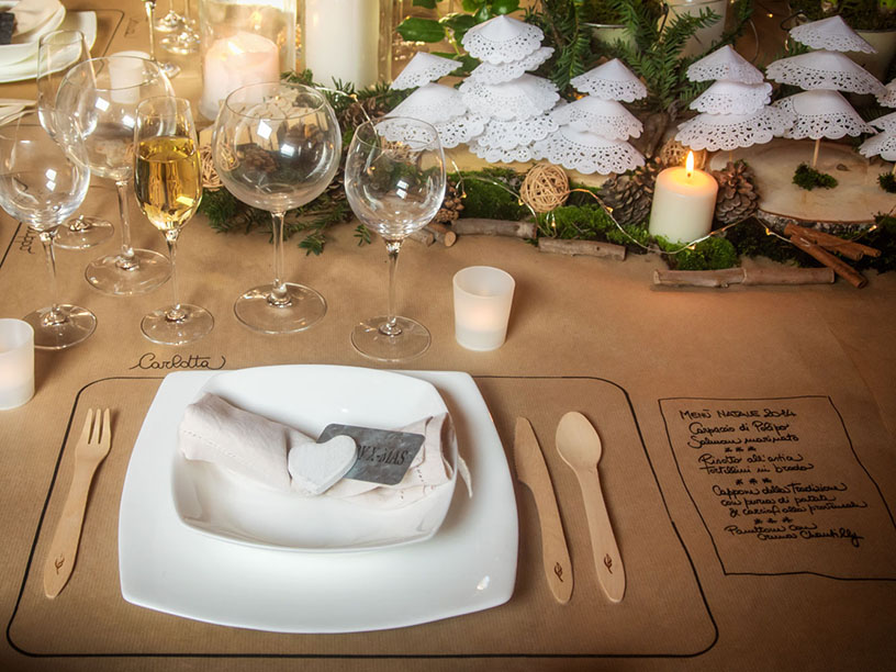 Un detalle que sorprenderá a todos será el de usar como mantel uno de papel. Juega con esta idea. Por ejemplo puedes escribir sobre el mantel el menú y el nombre de nuestros invitados para indicarles el sitio.