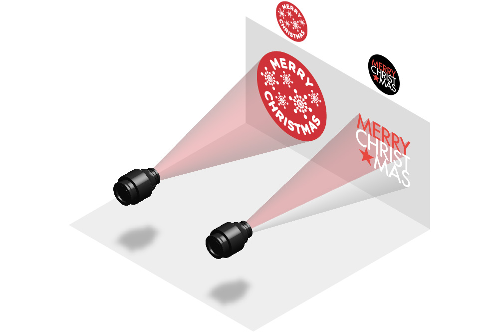 Los proyectores profesionales proyectan la imagen en un círculo luminoso de un diámetro que varía de los 0,40 a los 40 metros según la posición del proyector con respecto a la pared.