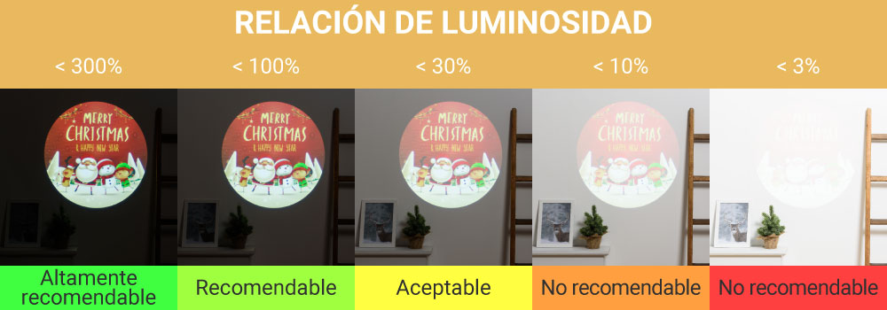 Relación de luminosidad = Luxes del proyector / Luxes del ambiente