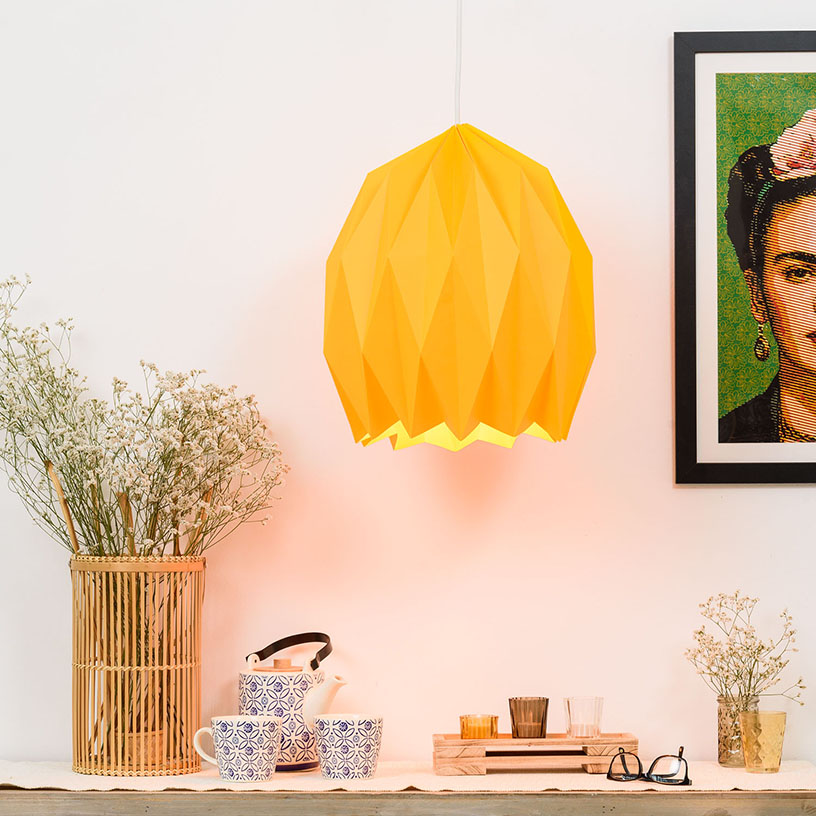 Et voilà! Ya tienes tu lámpara de papel. Para un buen resultado te aconsejo que abras suavemente con las manos la parte inferior de la pantalla.