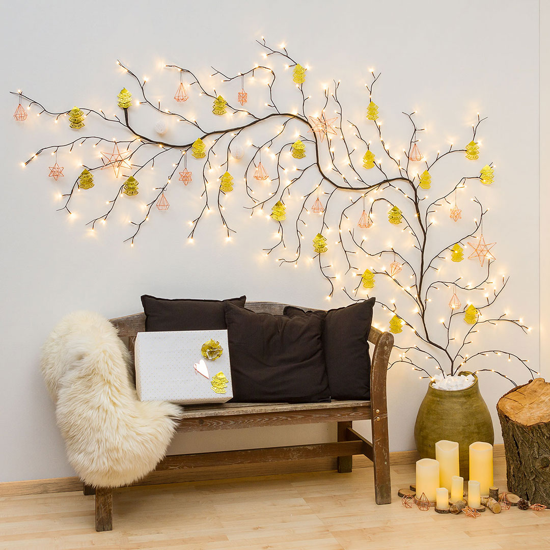 Puedes utilizar las ramas a modo de un portafotos original o un tablón luminoso para dejar caer tus ideas o abalorios. Otra idea podría ser utilizar más de un para crear un ambiente muy evocador. Con las ramas LED puedes dar rienda suelta a tu creatividad y diseñar todo tipo de composiciones otoñales hechas por ti para una bonita decoración de ventanas por ejemplo.