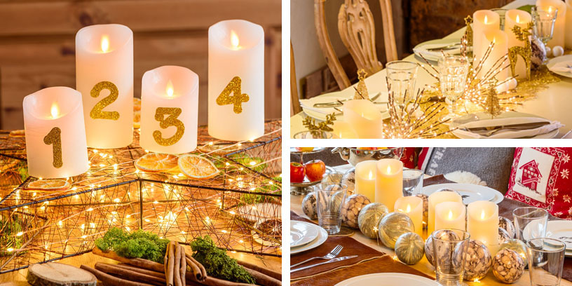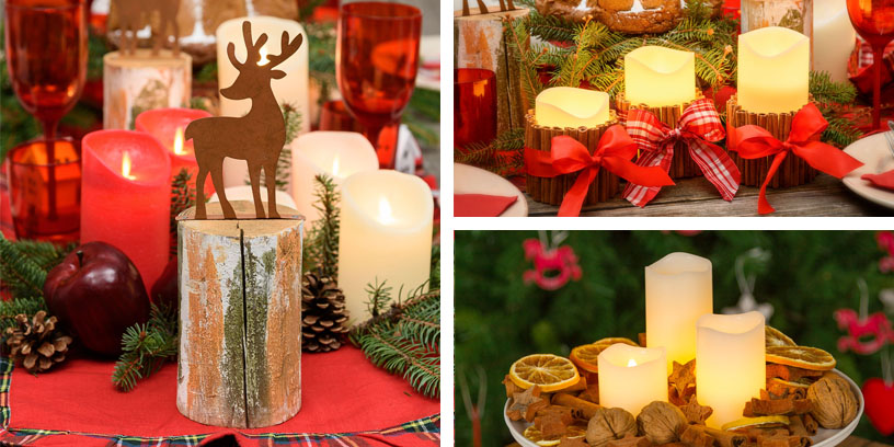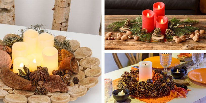 Realizar un centro navideño y no usar velas es casi imposible. Visten la mesa elegante y crean una atmósfera relajada que toda cena en familia necesita. Además son muy fáciles de usar, y sin son velas Led aún más.