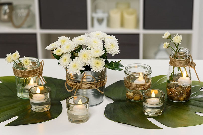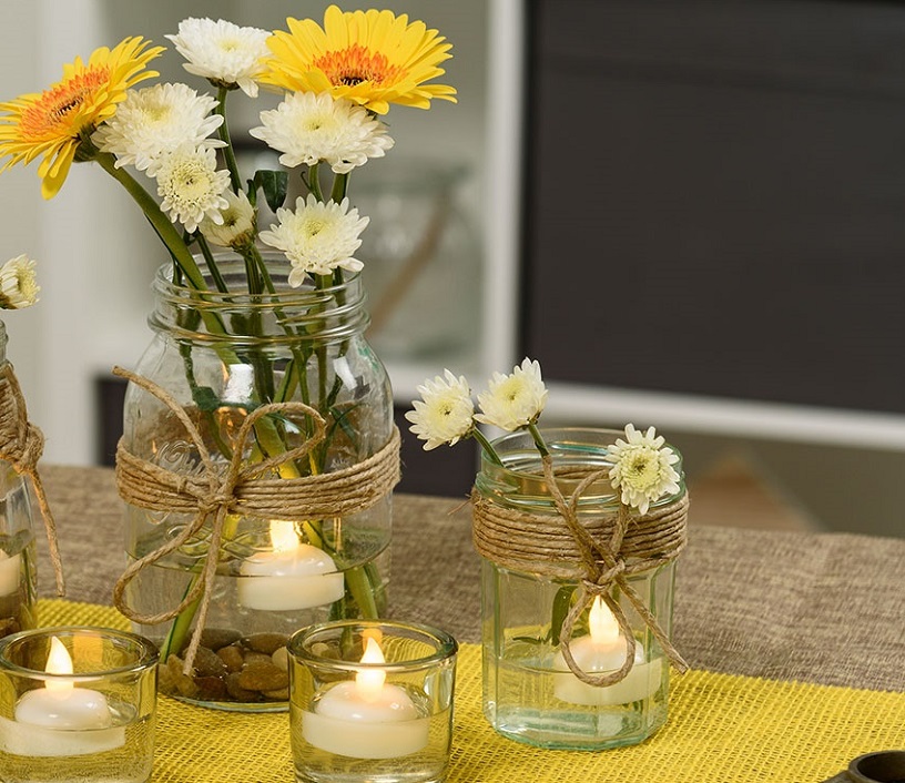 Descubre cómo decorar la mesa de comedor, una mesa de centro o una boda boho chic a base de flores, velas y tarros de cristal. ¡Verás qué fácil es con nuestro tutorial DIY!