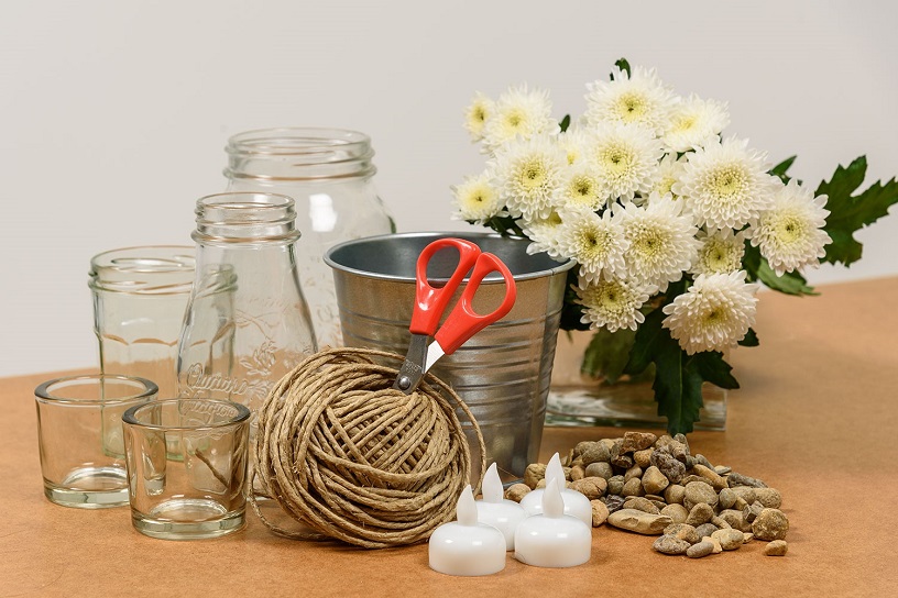 Cuerda de yute, aunque también puedes decorar los tarros con tela de saco u otras fibras naturales;