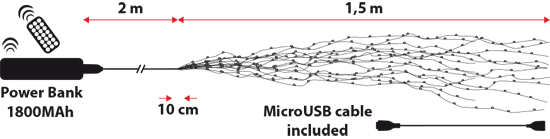 Cascada de luces 1,5 m con Power Bank y cable MicroUSB, microled blanco cálido