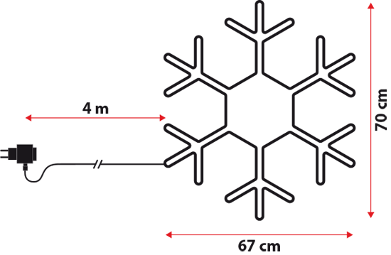 Una tira led muy luminosa recorre todo su interior, haciendo posible que el copo de nieve brille en su totalidad sobre todo si se cuelga de la pared. Además, cuenta con 576 led blanco frío: 540 luz fija y 36 parpadeo rápido. El juego de luces es automático.
