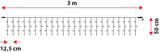 Cortina 3 x h 0,5 m, 120 maxiled blanco frío, cable transparente, prolongable