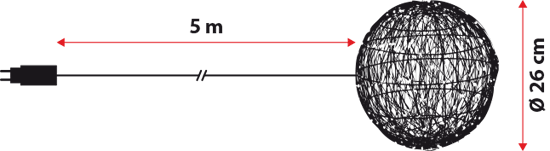 El cable de alimentación de 5 metros permite colocar la esfera incluso lejos de tomas eléctricas, ya sea en el jardín, en el balcón de casa, en un escaparate o cerca del árbol de Navidad.