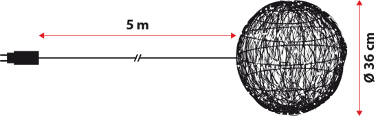 El cable de alimentación de 5 metros permite colocar la esfera incluso lejos de tomas eléctricas, ya sea en el jardín, en el balcón de casa, en un escaparate o cerca del árbol de Navidad.