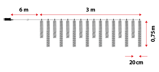 Estalactita 16 festones, 3 x h 0,75 m, 2000 microled blanco cálido