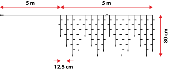 - Medidas: 5 x h. 0,8 metros, 250 Píxeles led