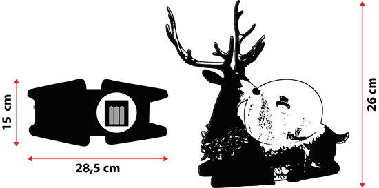 Imagínate la cara de alegría de tus hijos al ver la magia de la luz brillar ante sus ojos. Este maravilloso farol con forma de reno agazapado da cobijo a una bola luminosa que contiene un muñeco de nieve, envuelto por una nevada de purpurina brillante. El efecto nevada se consigue gracias al movimiento del agua dentro de la esfera. Es un verdadero espectáculo que hará que tu hogar sea aún más acogedor durante las fiestas.
