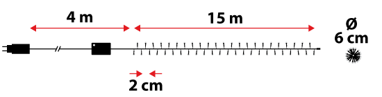 Esta guirnalda de luces está diseñada para uso exterior, ideal para instalaciones navideñas temporales. El cable verde oscuro es perfecto para la decoración de los árboles, ya que se camufla entre las ramas, dejando resaltar únicamente la luz de los led. Además, dispone de un cable de alimentación de 4 metros que permite colocarla incluso lejos de las tomas de corriente.