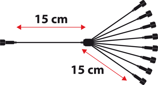 Está compuesto por un conector macho de entrada y ocho conectores hembras de salida. El macho va conectado al cable de enchufe y las hembras a las luces.