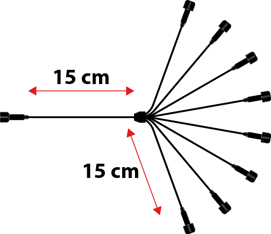 - Nº 8 conectores hembra IP44 con 15 centímetros de cable cada uno