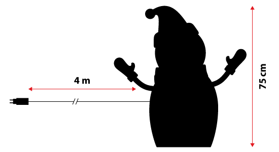 Funcion a baja tensión gracias al transformador incluido, por lo que se trata de un adorno seguro en presencia de niños o animales. El muñeco de nieve se suministra con un cable de alimentación de 4 metros de longitud, que permite colocarlo fácilmente incluso lejos de las tomas de corriente.