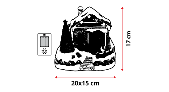 El pueblo está alimentado por 3 pilas tipo AA, no incluidas. El compartimento de las pilas está integrado y se encuentra en la base; también incluye un cómodo interruptor de encendido y apagado.