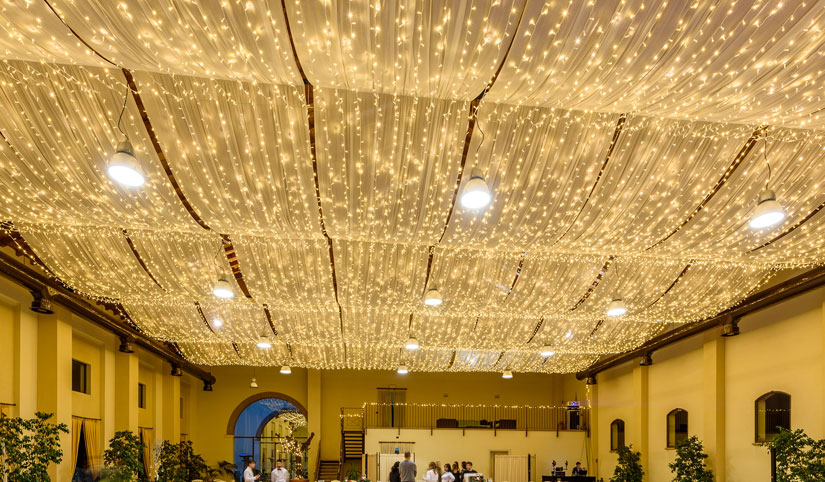 Todavía hoy en día continúa proyectando y realizando instalaciones para eventos con uno de los catálogos de productos de iluminación decorativa más amplio de toda Italia.