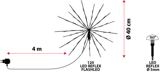 Rama de estructura plateada con 112 Led integrados de luz fija más 8 Flash Led que crean un juego de destellos automáticos que aseguran un gran efecto visual.