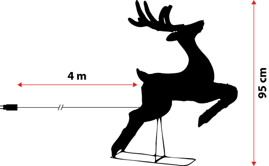 El reno dispone de un transformador, conectado a un cable de alimentación blanco de 4 metros, que reduce la tensión eléctrica y garantiza una decoración segura.