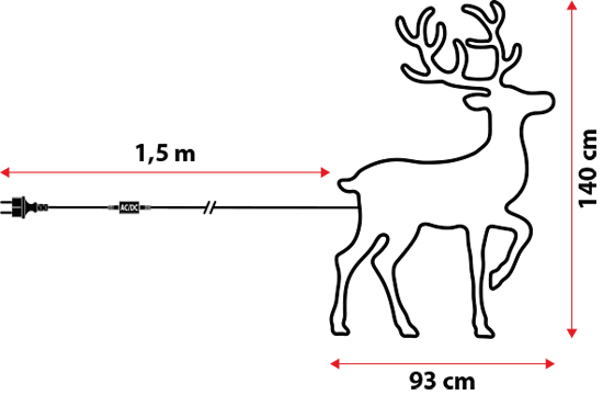 La decoración se ilumina gracias a 1200 led color blanco cálido con luz fija. La estructura lleva integrado un pedestal muy útil si se desea apoyar el reno en el suelo, en caso contrario el pedestal se puede cerrar.