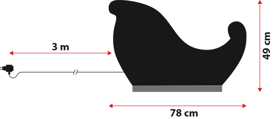 El trineo luminoso funciona con baja tensión y es exclusivamente para interiores. Para enchufarlo dispones de un cable de 3 metros.