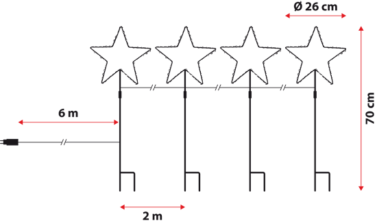 Ce lot de 4 étoiles lumineuses sur piquet, mesurent 70 centimètres, et vous leurs trouverez facilement différentes utilisations.