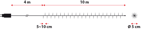 Sur un câble couleur argenté de 10 mètres sont disposées 1000 diodes Led à double puce très lumineuses à lumière fixe pour une intensité lumineuse majeure.