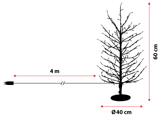 Cet arbre est haut de 60 centimètres et présente une série de branches qui se ramifient à partir du tronc, lesquelles sont modulables grâce à l'âme en métal qui les traverse, permettant ainsi de l'adapter aux besoins de votre décoration. De plus, grâce à son ouverture, cet arbre peut atteindre un diamètre de 40 centimètres, offrant un effet visuel vraiment remarquable.