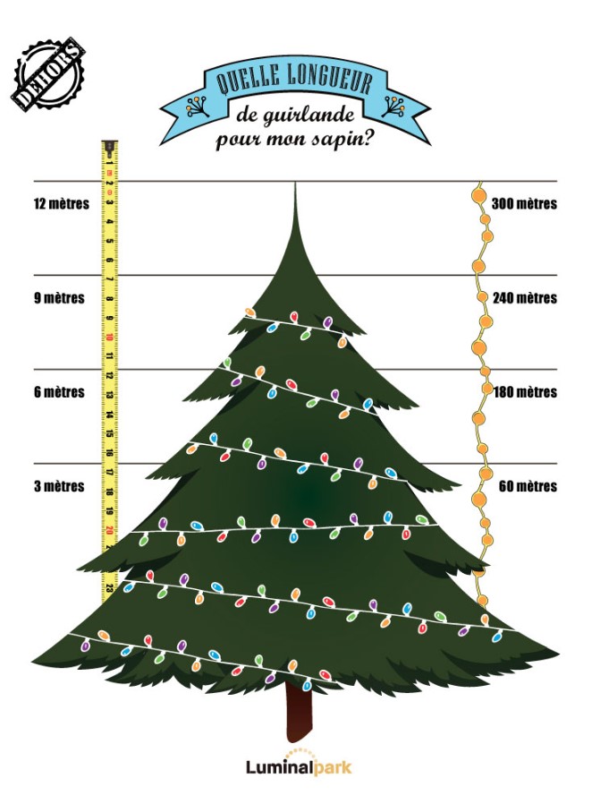Il est possible d'établir un principe de base pour calculer la dimension idéale de la guirlande proportionnelle à la hauteur de l'arbre de Noël.