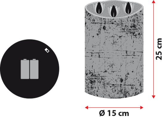Bougie led en cire rustique ivoire avec trois flammes, h 25 cm