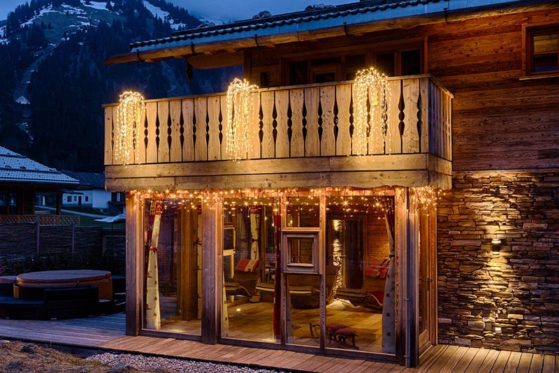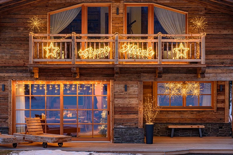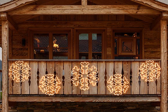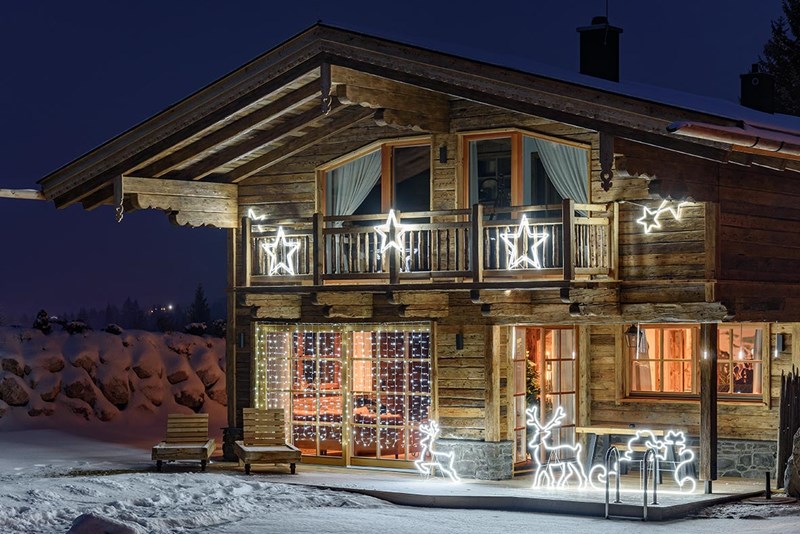 Comme ici, marier l'illumination de votre habitation et le paysage environnant. Pour ce chalet en montagne, par exemple, la blancheur des leds se combine à merveille avec le blanc de la neige à terre