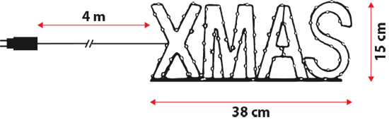 Ses mesures sont : 15 cm de hauteur par 38 cm de large. La lumière est fixe sans jeux de lumière.
