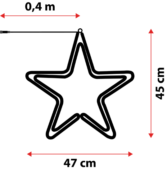 Cette étoile lumineuse professionnelle de 47 x 45 centimètres est construite avec un tube lumineux à LED blanc chaud et flash blanc froid, qui entoure la structure en aluminium légère mais robuste.