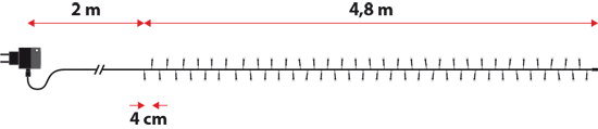 Sur un câble vert long de 4,8 mètres se suivent 120 led blanc froid. L'effet lumineux est assuré parce que ce câble se mimétise entre les branches d'un sapin les led resortiront dans l'obscurité. Cette guirlande peut être placée aussi bien en intérieur comme en extérieur, cette décoration lumineuse est idéale pour décorer haies et autres supports dans votre jardin.