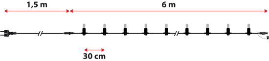 Guirlande professionnelle de 6 mètres de long avec 20 ampoules à Led blanc chaud remplaçables.