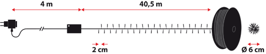 La guirlande a une longueur de 40,5 mètres et se compose de 2000 LED blanc chaud sur un câble vert. Distance entre les leds est de 2 centimètres.