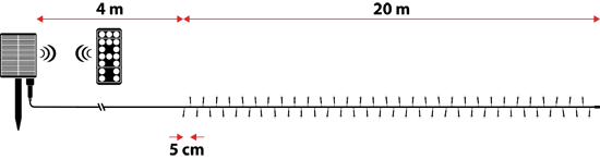 La décoration est basse tension, donc sans danger à manipuler. Entre le début de la guirlande et le panneau solaire se trouve un câble d'alimentation de 4 mètres de long qui facilite le positionnement où vous le souhaitez.
