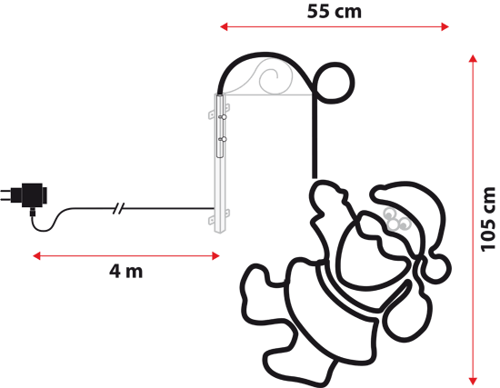 Ce Père Noël en tube lumineux est conçu pour être installé au mur en utilisant le support inclus dans l’emballage.