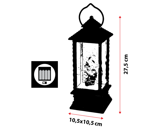 Réalisée dans une élégante couleur blanc antique, la lanterne présente un verre transparent derrière lequel se trouve un Père Noël souriant. Dans sa main, il tient un petit sapin de Noël, tandis que l'autre est soutenue par une canne, créant une scène charmante et festive.