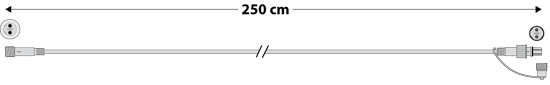 Rallonge de 2,5 m, câble en caoutchouc blanc avec connecteur mâle-femelle circulaire pour l'extérieur. Cette rallonge est compatible avec tous les produits de la série PML professionnelle. Utile pour un prolongement du câble d'alimentation d'un article ou pour faire un branchement de plusieurs éléments décoratifs sur un même branchement.