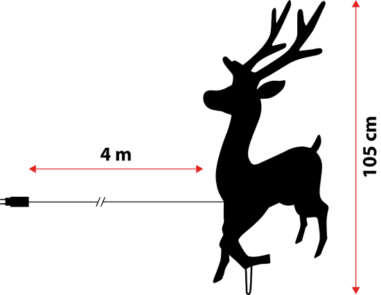 Le renne est livré avec son propre transformateur, relié à un câble d'alimentation de 4 mètres, transformateur qui réduit la tension électrique et vous garantit une décoration sûre.
