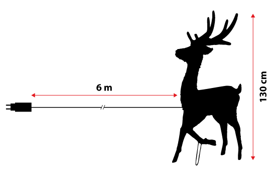Ce renne fait partie de la série HDM (High Density Microled), qui comprend une variété de figures lumineuses comme des couronnes, des étoiles et des sphères, toutes caractérisées par une haute densité de microled. Le renne fonctionne à basse tension grâce au transformateur inclus et est fournie avec un câble d'alimentation pratique de 6 mètres de long, permettant de la placer facilement même loin de la prise électrique.